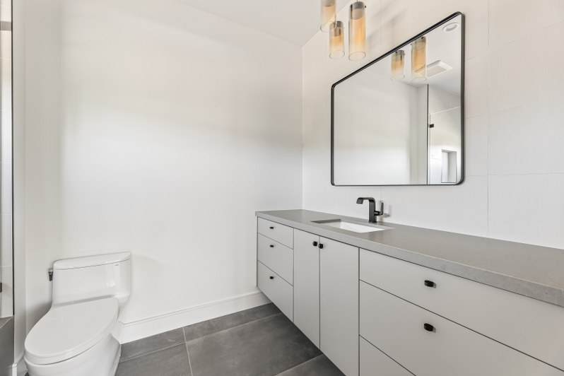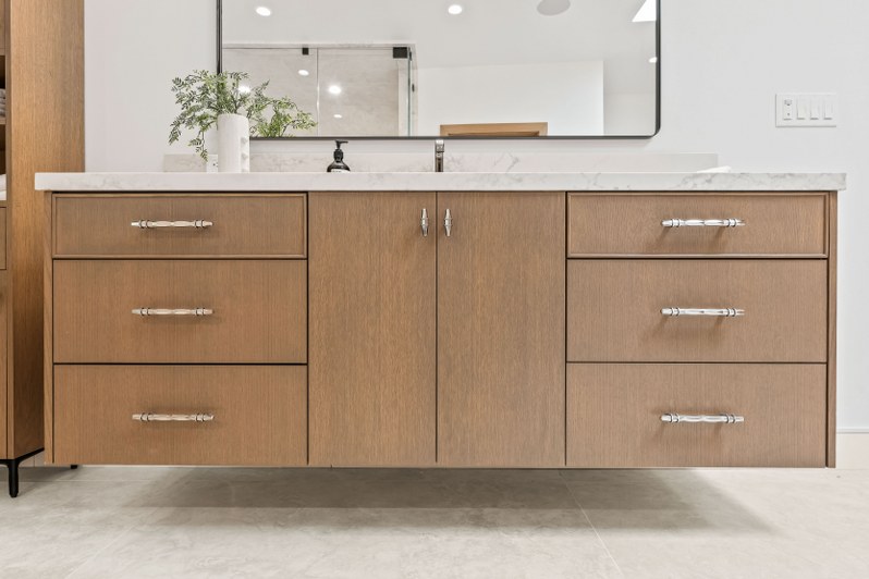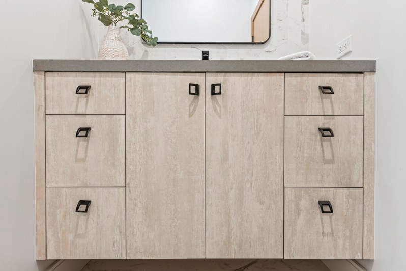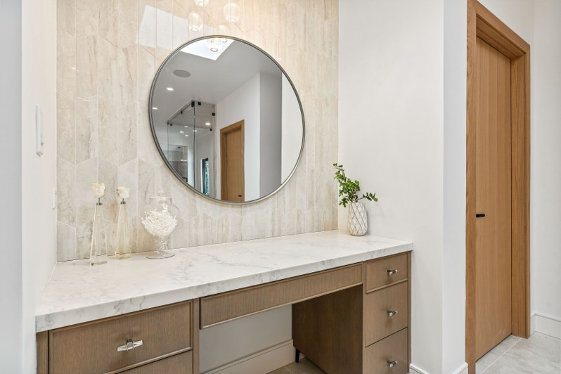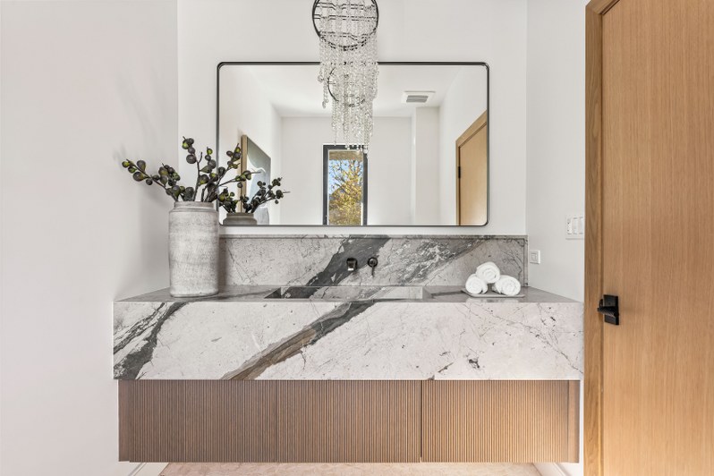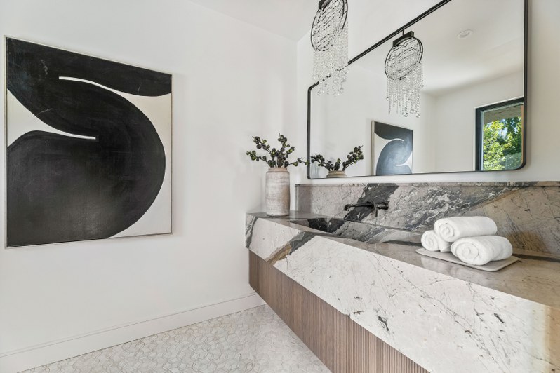 The same level of detail carries seamlessly into the primary and powder bathrooms, creating a cohesive and intentional aesthetic throughout the home.
